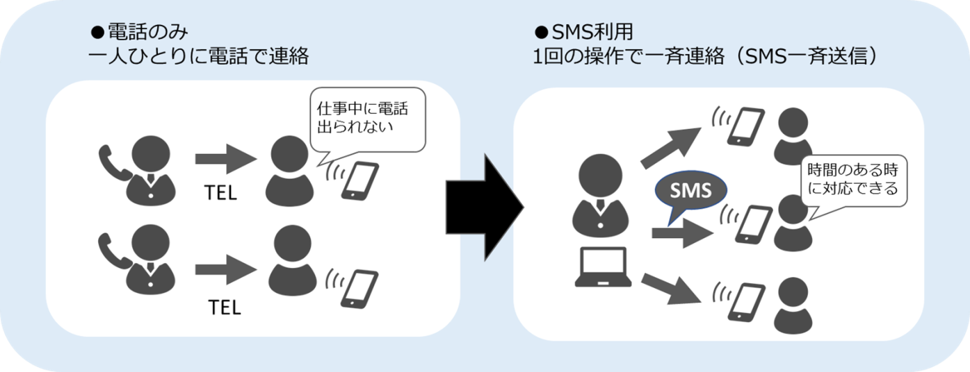 また、SMSの導入により、連絡が取れるまで電話し続けるという工数や、送付状・郵便物などのコスト削減が見込めるため、行政サービスの向上のみならず、コスト削減、業務の効率化も期待されております。