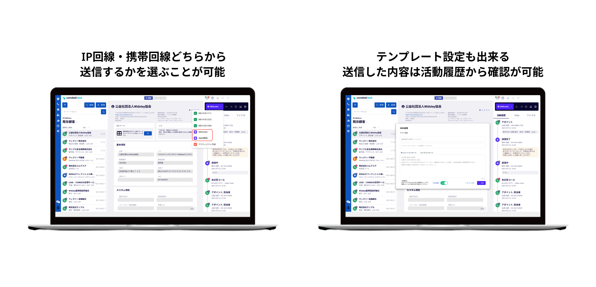 今回の連携によって、ウィズリーが提供するCTIツール「Comdesk Lead」からIP回線・携帯回線どちらを利用していてもSMSを送受信することが可能になります。 これにより通話のログだけではなく、メッセージのやり取りもログに残すことができ、「Comdesk Lead」をご利用いただくお客様に、 通話だけでなくSMSでのコミュニケーションを選択いただけるようになりました。